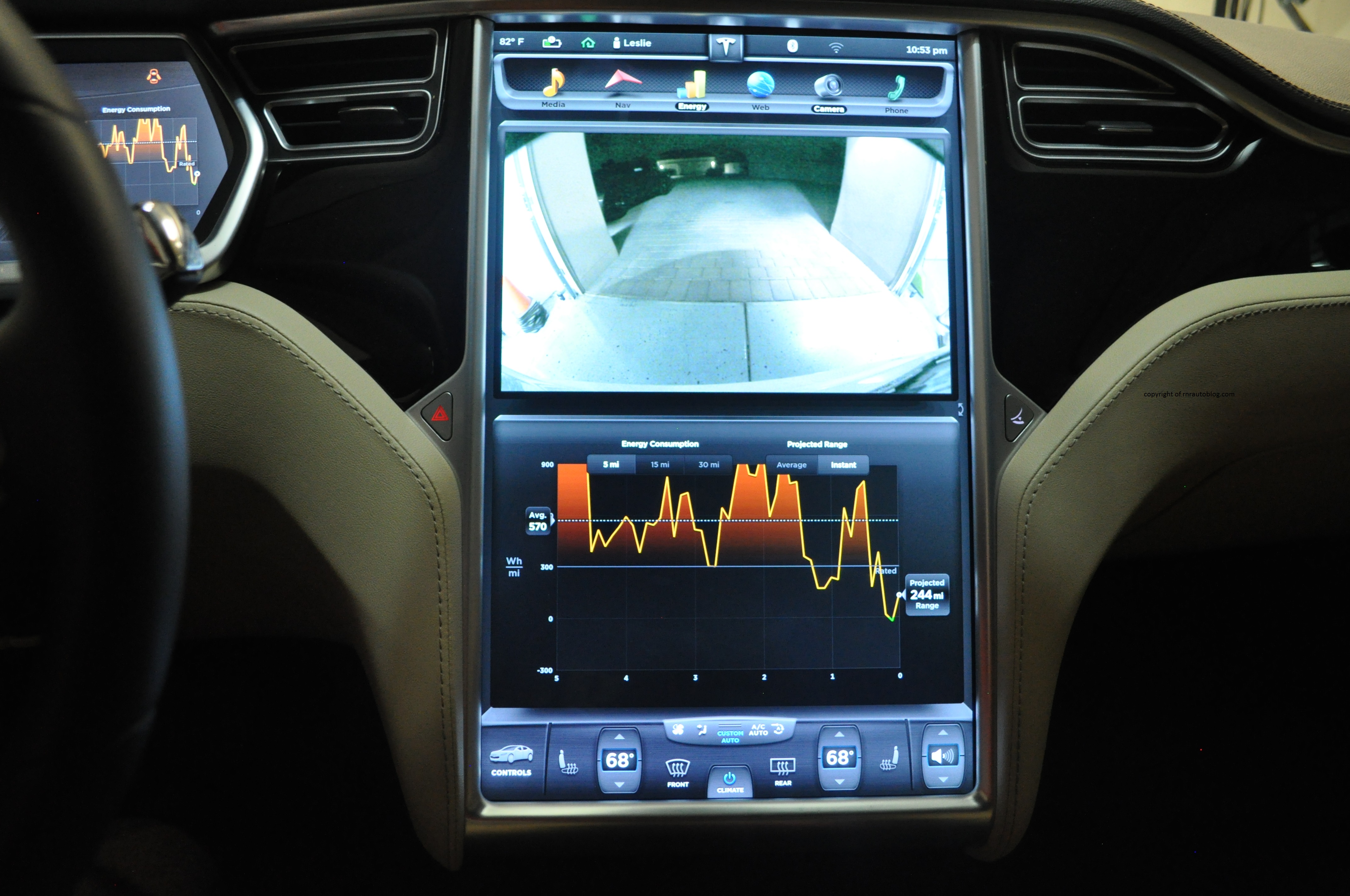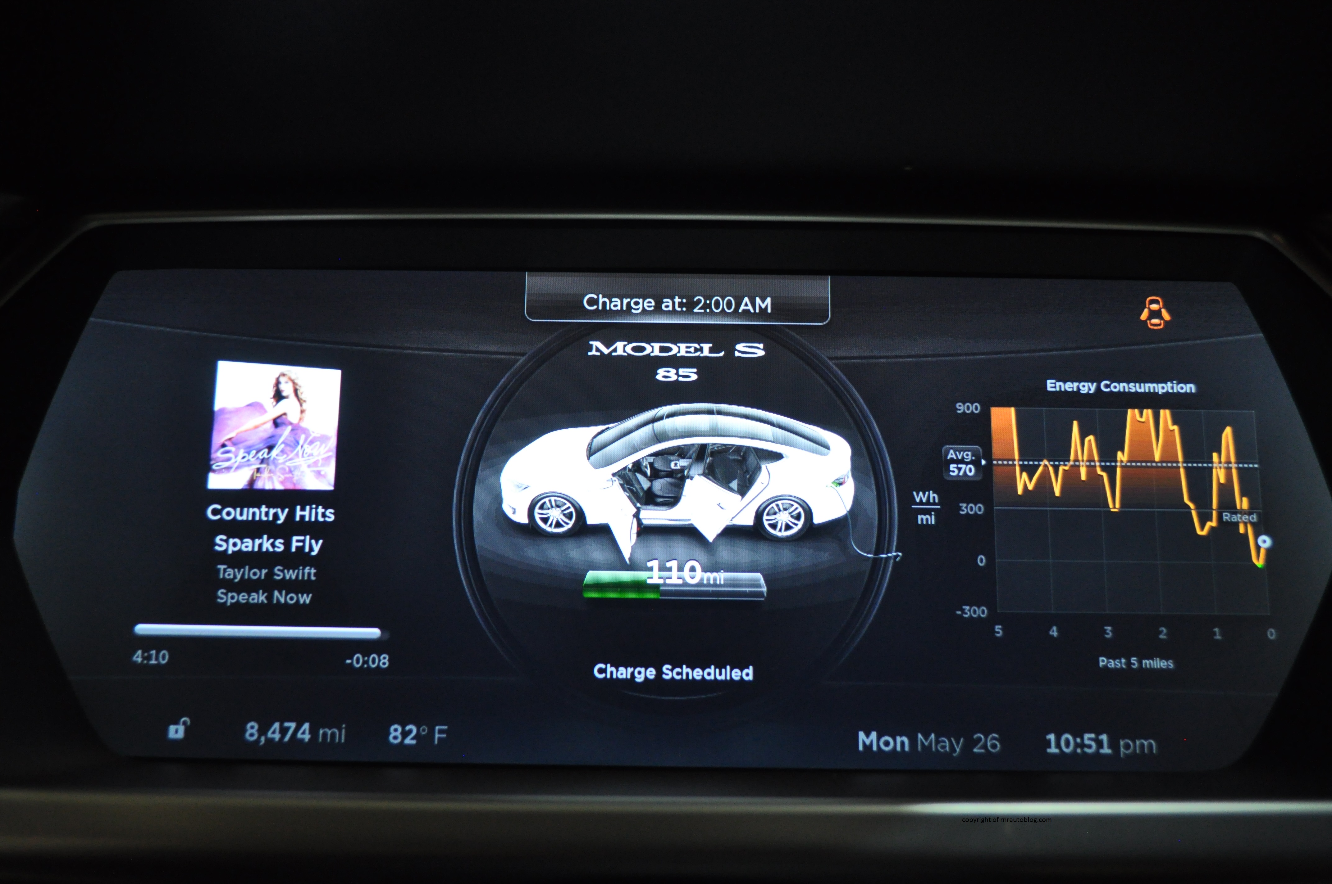 There are two powertrain choices available: a 60-kWh battery with a 302 horsepower motor and a 85-kWh battery with a 362 horsepower motor. This Model S, equipped with the latter, provides electrifying (pun intended) acceleration, and it certainly feels like all of the 362 horsepower is being used. With electric cars, all of the torque is available instantly, so power is readily available any time you depress the gas pedal. However, I will say this, it is a very heavy car, and despite its quickness, there are times when it just feels heavy. I can’t put my finger on it, but sometimes the heaviness is just there. Unlike a conventional car, there is no ordinary transmission with a number of gears. It is a one speed direct drive transmission with no gears to interrupt its power delivery. However, the point of a Tesla Model S is due to its fuel economy, and the Tesla excels in this regard. With the 85-kWh model, the Model S can go 265 miles on a single charge. Even if you drive poorly, you can still get a range of 200 miles without having to charge. According to Consumer Reports, the Tesla Model S 85-kWh gets 2.48 miles per kilowatt hour or the equivalent of 84 mpg overall.